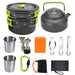 Very used: Our cooking set is designed for 2-3 people and is equipped with all the necessary kitchen. Ideal for camping, hiking, picnicking and other outdoor activities.
